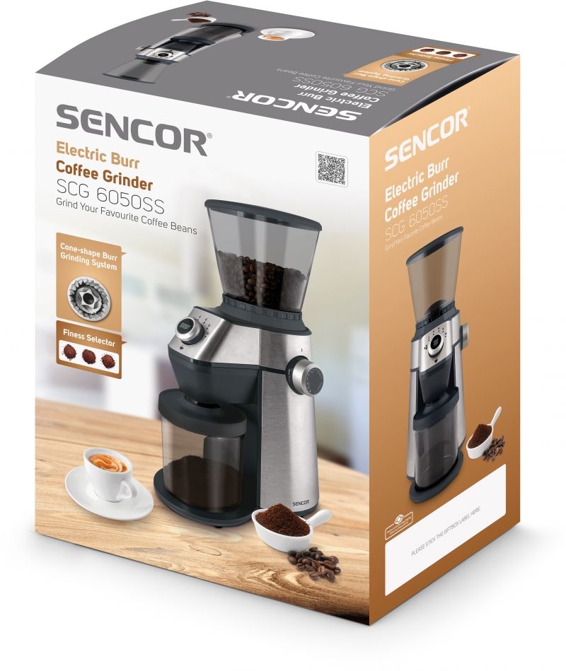 Електрическата кафемелачка Sencor SCG 6050SS приготвя за вас смляно кафе в прозрачен контейнер, който можете лесно да извадите. Можете да приготвите кафе на зърна в бункер с обем 350 грама. И двете части могат лесно да се отстранят и мелничката може да бъде перфектно почистена от старо смляно кафе. Мелницата Sencor SCG 6050SS също може да бъде стартирана рано сутрин без никакви притеснения. Благодарение на модифицираната конструкция, меленето на кафе е почти безшумно.