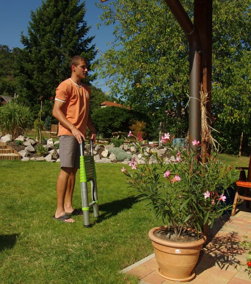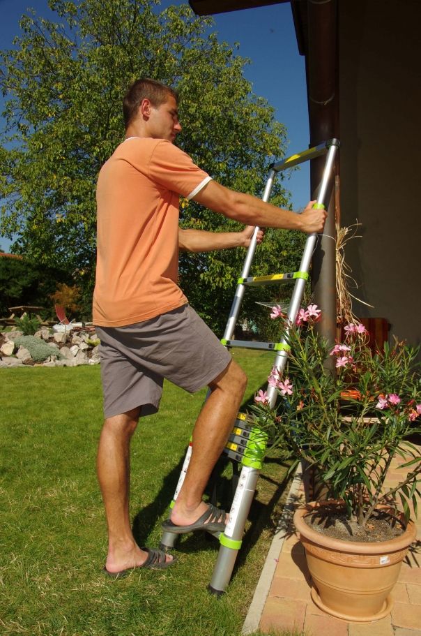 Благодарение на уникалната си телескопична система стълбата е много популярна сред повечето търговци, сервизи и собственици на къщи и градини. Стълбата е с минимални изисквания за място за съхранение - когато е сгъната заема 81 х 48 х 8 см. Изключително лесна и удобна за работа. Специална конструкция и подходящо подбрани материали осигуряват висока стабилност, дори когато стълбата е напълно натоварена, позволявайки максимално натоварване от 150 кг. В р напълно разгънато състояние е 3,2 m.