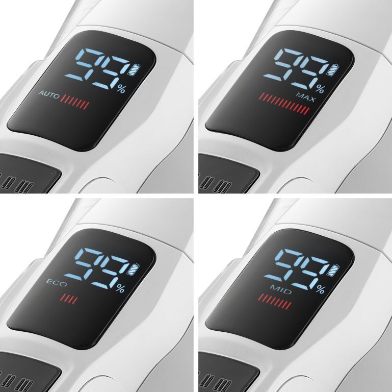Функция AUTO - автоматично осигурява оптимална производителност в зависимост от вида на пода и установената концентрация на прах.