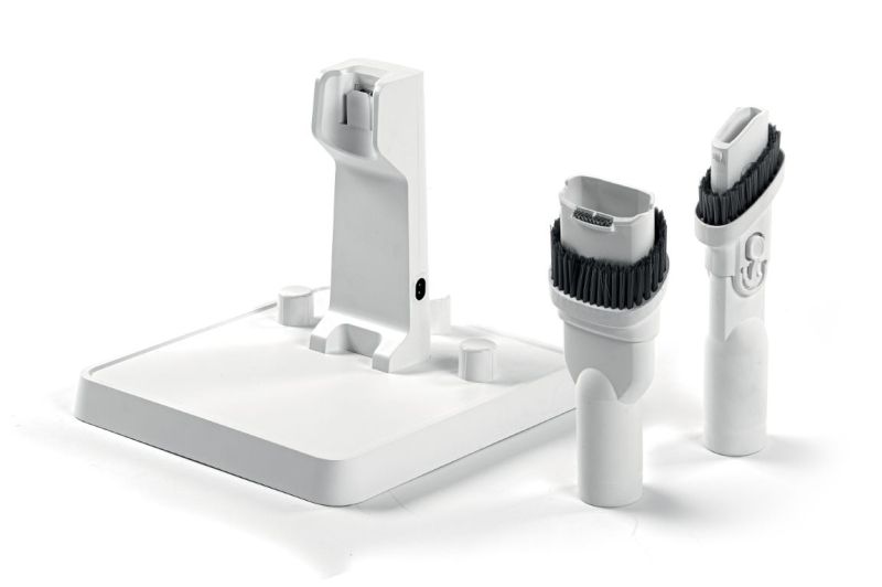 Основа за зареждане за практично съхранение на прахосмукачката с вграден държач за аксесоари
