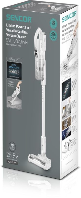 Вертикална прахосмукачка SENCOR SVC 9829WH, акумулаторна, 3 в 1