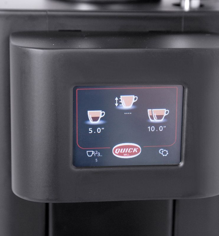 Със стоманени плоски ножове Ø 50 мм, производителност до 2.2 г/сек и 2-инчов сензорен дисплей, SIRIO дава възможност за лесно програмиране на единична, двойна или непрекъсната доза.
