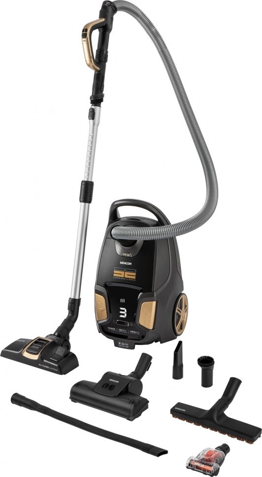 Supplied accessories: Universal Floor Nozzle, Turbo Brush, Mini Turbo Brush, Hard Floor Nozzle, Long Flexible Crevice Nozzle,