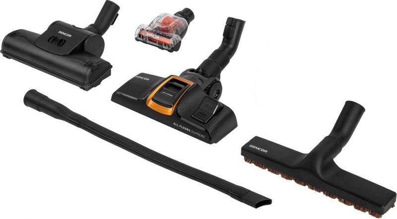 Supplied accessories: combination nozzle, turbo brush, mini turbo brush, hard floor nozzle, long flexible crevice nozzle, brush