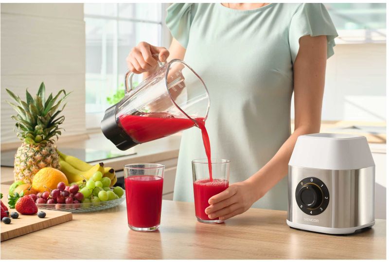 Мощен 1250W мотор с 24000 об/мин 1.5L стъклен съд 6 остриета от неръждаема стомана Намалява окисляването за питателни смутита 5 скорости и пулсираща функция Идеален за приготвяне на пресни плодови и фитнес напитки, смутита, супи, салати и бебешка храна Пулсираща функция за краткотрайно пасиране и раздробяване на лед Отлична стабилност благодарение на вендузи Вграден предпазен механизъм и неплъзгащи се крачета за максимална безопасност по време на употреба