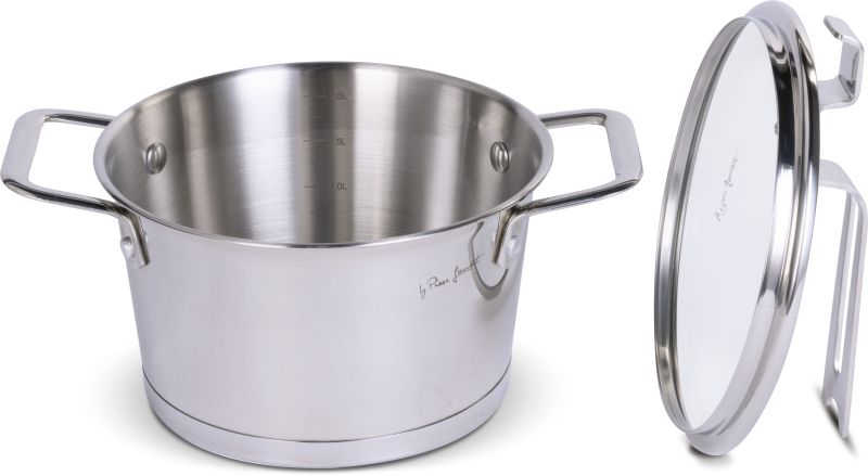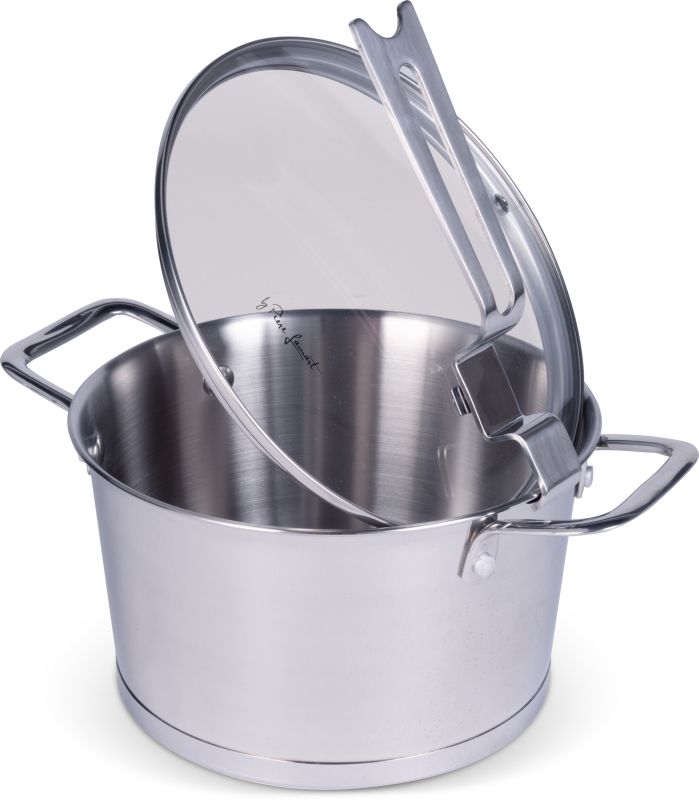 - Дизайнерските съдове за готвене от неръждаема стомана, изработени от първокласна устойчива на корозия стомана, включват солидно дъно тип „сандвич“ с много елегантни дръжки за по-голяма безопасност, функционалност и комфорт.