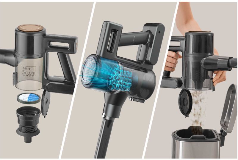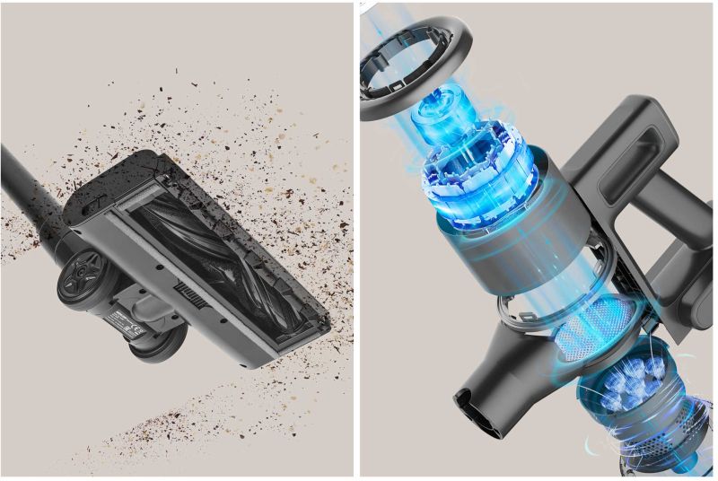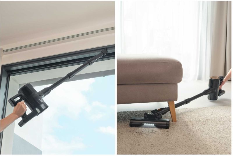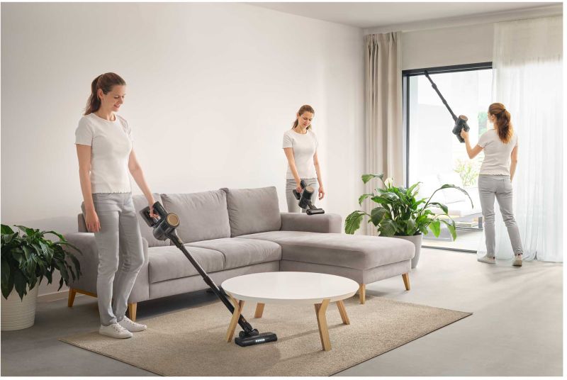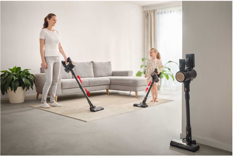 С мощния си дигитален мотор от 200 W, тази прахосмукачка осигурява безпроблемно почистване както на килими, така и на твърди подови настилки. Моторизираният накрайник за под с вградено LED осветление излага дори най-малките частици за наистина цялостно почистване. За мебели и интериор на автомобили, подвижният ръчен модул с моторизираната четка “Cast and Dogs” прави премахването на косми и козина бързо и лесно. 22,2V литиево-йонната батерия (2600 mAh) осигурява до 35 минути непрекъснато почистване.